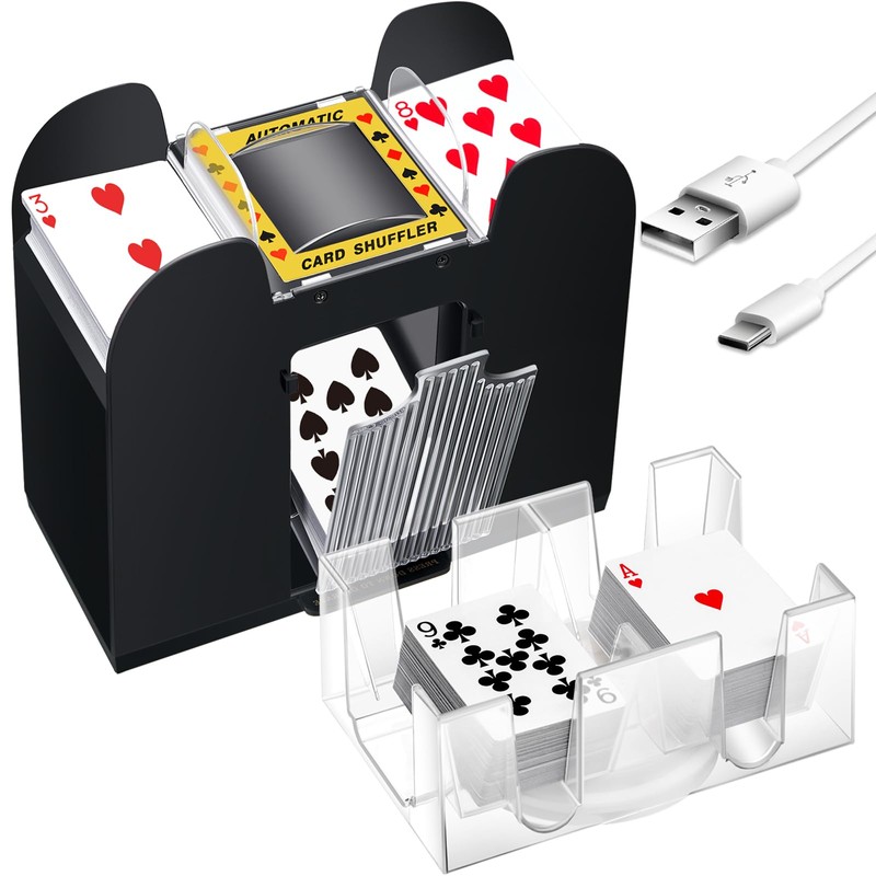 - Funny Gifts: the automatic card shuffler combined with clear card deck holder can be applied as funny and practical gifts for your friend, families, relatives, colleagues and so on