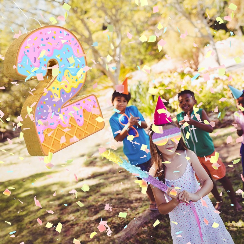 Aoriher Summer Number Pinata Strawberry Birthday Pinata Sweet Ice Cream Pinata with Stick Blindfold Confetti for Girls Summer Theme Birthday Babyshower Party Game Supplies Decor (Ice Cream, Number 2)