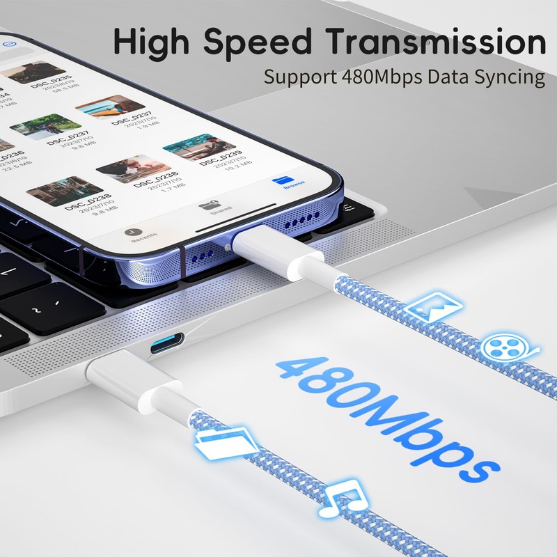 - [6FT USB-C Cable for iPhone 16/15] This type c charging block with 6FT long USB C to USB C cord, enough to be convenient to charge for iPhone 16 15 and iPad while you lie in bed or on the sofa. Up to 20W of power through the USB-C port and QC3.0 18W USB-A port. Charging up to 3X faster than a 5W charger and 480Mbps data syncing between your devices and laptop.