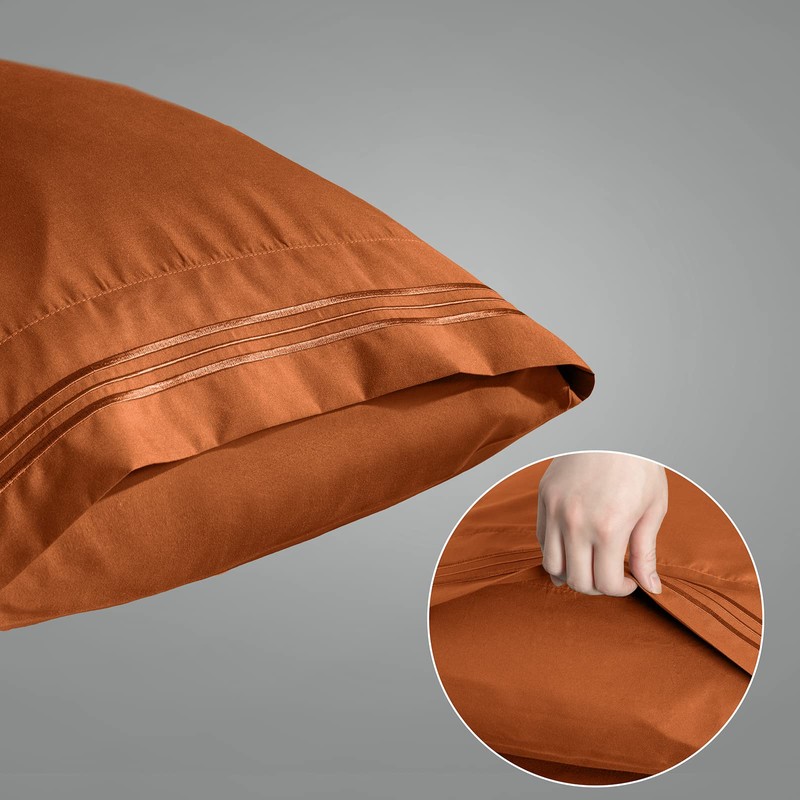 Aormenzy Microfiber Pillow Cases - Queen Size Set of 4 - 1800 Thread Count Ultra Soft Rust Pillowcases - Wrinkle Resistant Pillow Covers with Envelope Closure - 20" x 30"