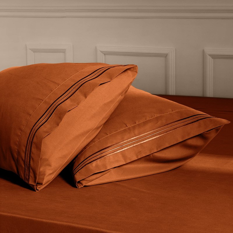 Aormenzy Microfiber Pillow Cases - Queen Size Set of 4-1800 Thread Count Ultra Soft Rust Pillowcases - Wrinkle Resistant Pillow Covers with Envelope Closure - 20" x 30"