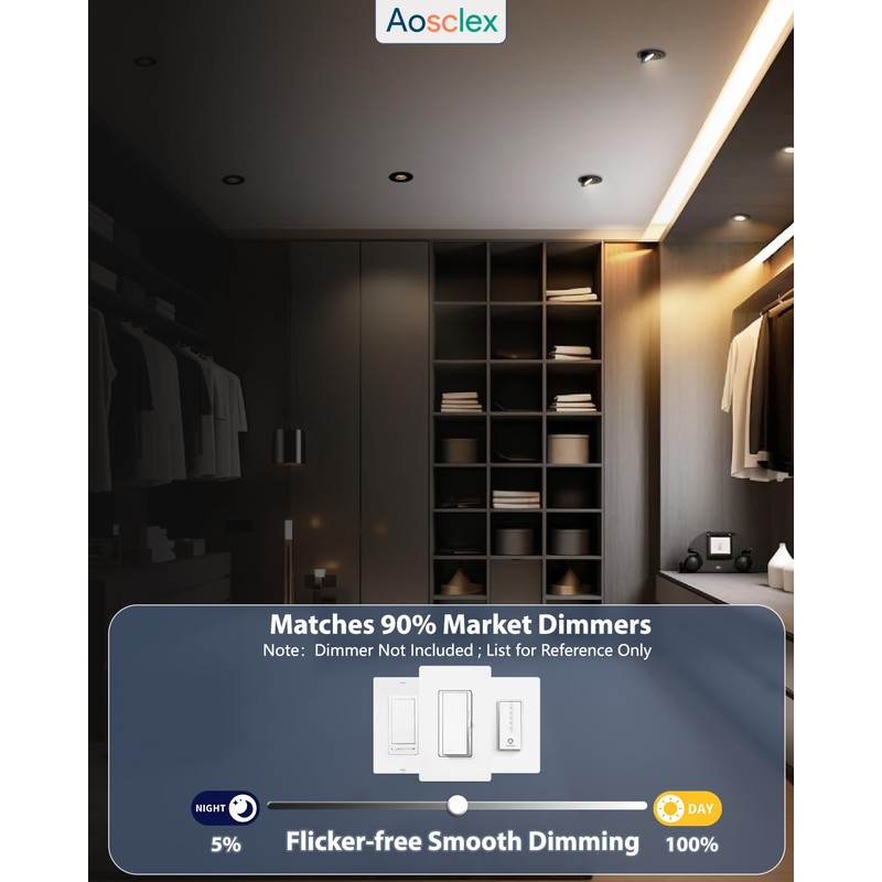 - 【Smooth Dimming for All Scenarios】Equipped with a high-quality driver chip, these LED recessed light fixtures support 5%-100% smooth dimming—flicker-free, no humming noise, and compatible with most dimmer switches. Perfect for adapting brightness to various scenarios: dim for cozy dinners, brighten for focused work, or set to a soft glow for relaxation. They seamlessly fit spaces like kitchens, living rooms, and workplaces, creating a comfortable lighting atmosphere tailored to every moment.