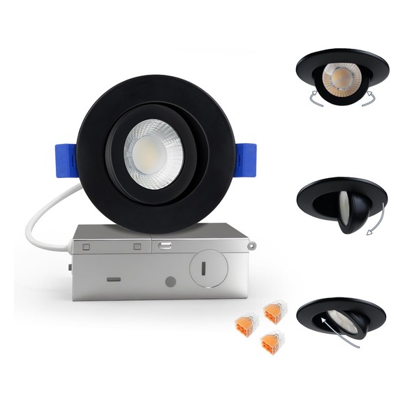 Aosclex 3 Inch 5CCT Gimbal LED Recessed Lighting with Jbox, 360°+90° Adjustable Directional Downlight, Dimmable Eyeball Can Recessed Lights, 7W 800LM, 2700K - 5000K Selectable, ETL (Black, 1 Pack)