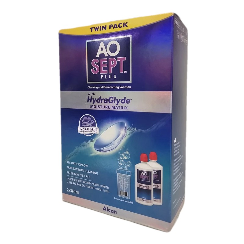 Introducing the AOSEPT Plus With HydraGlyde Twin Pack - your ultimate solution for pristine contact lens care. This innovative twin pack includes two bottles of AOSEPT Plus solution, each enhanced with HydraGlyde technology for superior cleaning and comfort.