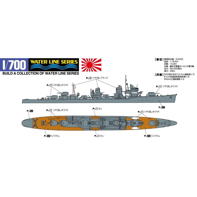 Aoshima Bunka Kyozai 1/700 Water Line Series Japanese Navy Destroyer Akiun Plastic Model 445