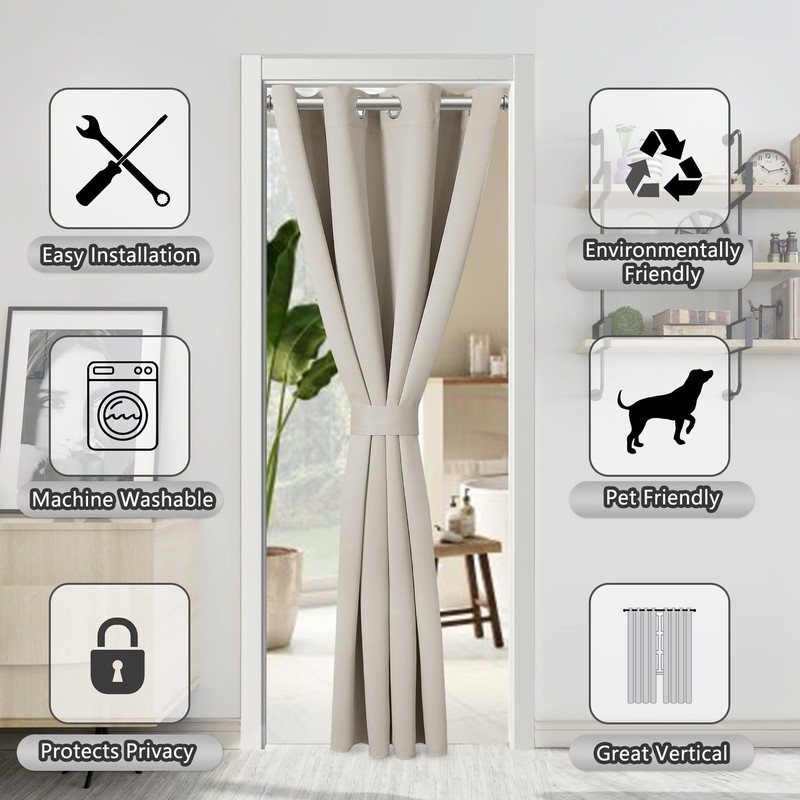 - [EASY TO CLEAN]: Door curtains are designed to be easy to clean and maintain. They can usually be machine washed or cleaned using simple hand washing or partial cleaning methods. This ensures that the door curtain maintains its appearance and function for a long time and extends its service life.