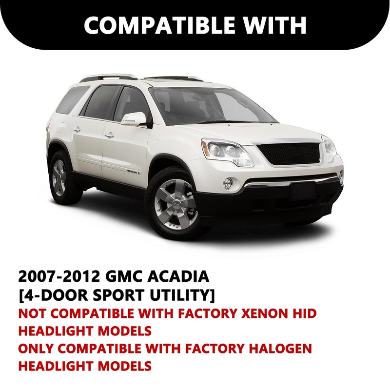 - 💡【VEHICLE COMPATIBILITY】Headlights Assembly Compatible With 2007 2008 2009 2010 2011 2012 GMC Acadia 4 Door Sport Utility Halogen Type. Compatible with models with halogen headlights ONLY. Not compatible with factory HID models.