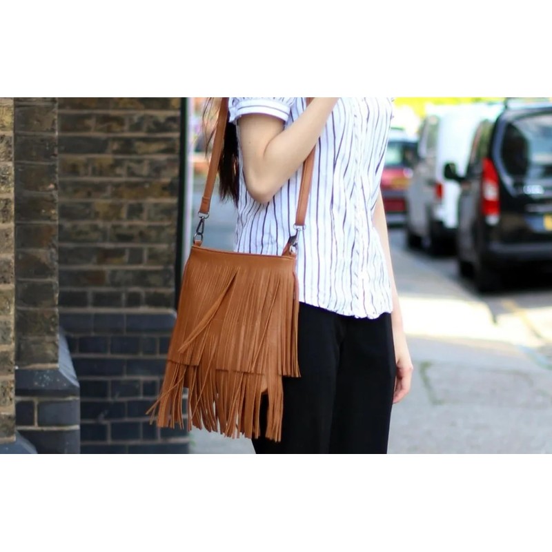 Size: W 26cm, H 27cm, D 4cm, Shoulder Strap 130cmVery smart and good size tassel shoulder or crossbody handbag