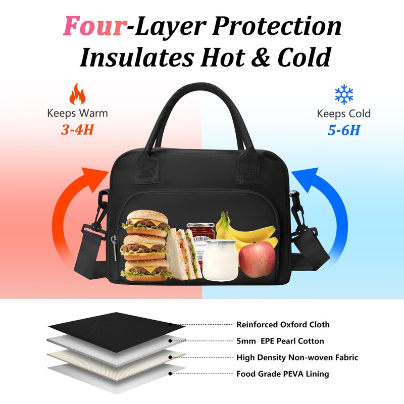 - 【Long-lasting Thermal Insulation & Freshness】 External thickened wear-resistant fabric, internal thickened foam insulation layer, hot and cold insulation with double effect, long time to keep the temperature of food - iced drinks cool and not melt, hot food warm and not cool, whether it is cold drinks and hot meals, can be a long-lasting freshness.