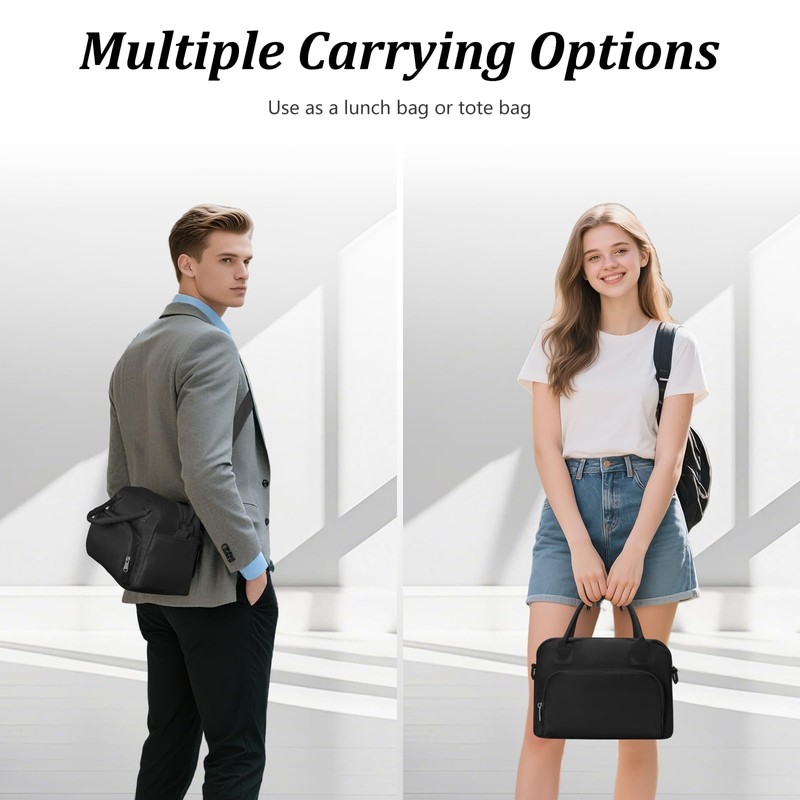 - 【Portable & Adjustable Shoulder Strap】This lunch bag carries a detachable and adjustable shoulder strap (23‘-43’ freely adjustable), supports handheld, shoulder carry, crossbody carry, suitable for daily use as lunch bag, snack bag, insulated bag, shopping bag, picnic bag or cosmetic bag, commuting, business trip, camping or gym can be matched with your heart.