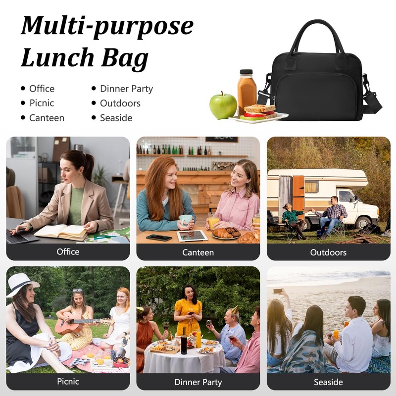 - 【Multiple Pockets & Versatile Fashion】 This lunch bag is both fashionable and practical - the main pocket is zipped to keep food and fruits warm; two side pockets for drinks or water bottles; a zipped insulated pocket on the front for storing important items or snacks; and an additional hidden pocket at the back for tissues, cutlery, headphones or data cables. It is not only suitable for office lunch, but also can be used as a simple daily commuting bag or cosmetic bag, suitable for work, travel, beach, picnic, party, office and other occasions. It is a thoughtful gift for family, friends, wife, daughter, mother.
