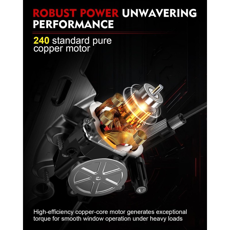 - Extended Component Lifespan: Avoid costly chain-reaction failures a failing window regulator doesn't just stop working it actively damages surrounding components, the heart of your power window system deserves protection. our balanced gear mechanism reduces operating strain by 40%, while thermal-cutoff circuitry prevents the burnout, unlike flimsy oem tracks that warp under stress, our cold-forged steel rails maintain perfect alignment through 100,000 cycles