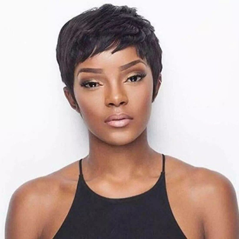 Black Pixie Cut Wig NO Lace Front Human Hair Wigs Natural Soft Fashion Daliy Use