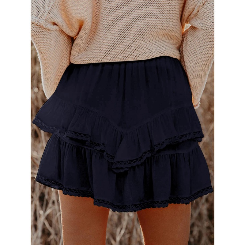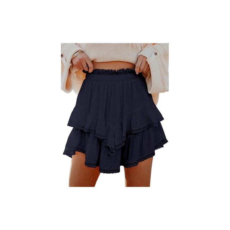 Aoudery Flowy Shorts for Women Casual Boho Ruffle Tiered Skorts High Waist Mini Skirts Golf Tennis Butterfly Crochet Shorts - Navy Blue XL