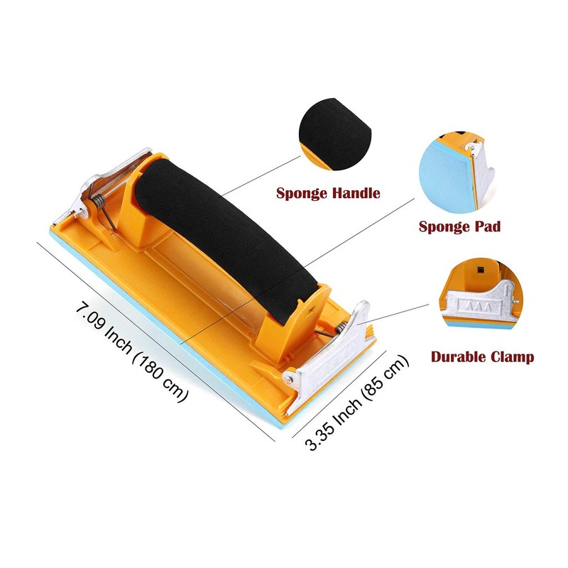 - Sponge Pad size: 7.087 x 3.346 inch (180 x 85 cm), Supports 1/3 sheet of standard 9 x 11 inch Sandpaper.