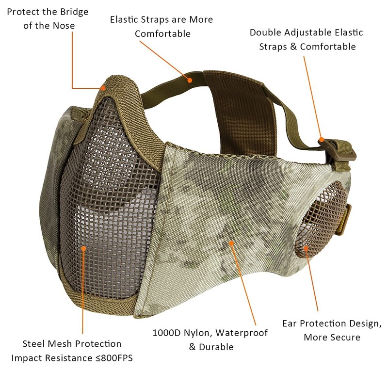 - ✨Mesh ear protector with adjustable straps Perfect for airsoft BB gun close quarters battles cosplay and party