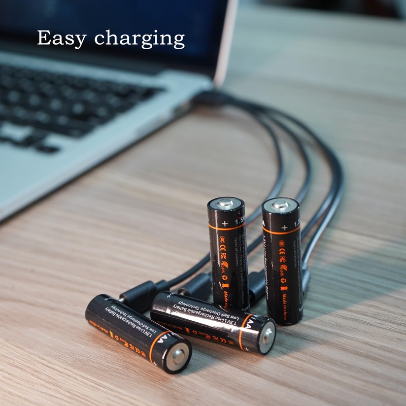 - Built-in USB Charging Port: Each battery comes with an integrated USB charging port and a 4-in-1 charging cable. You can charge them with any USB power adapter, power bank, or even your computer while you work. They are also compatible with traditional NiMH and NiZn battery chargers.