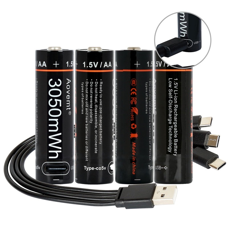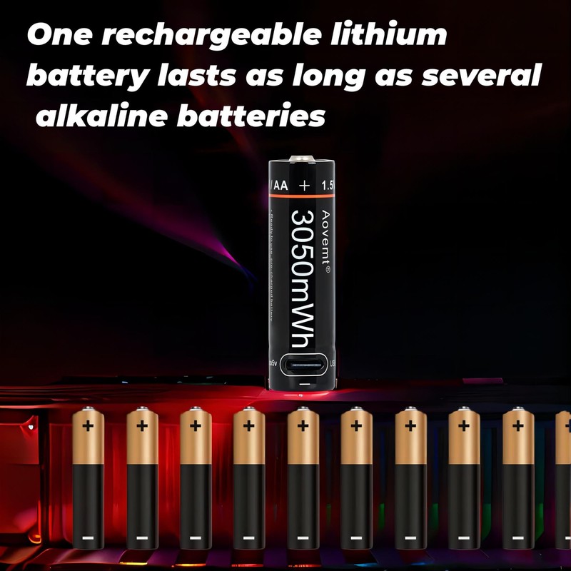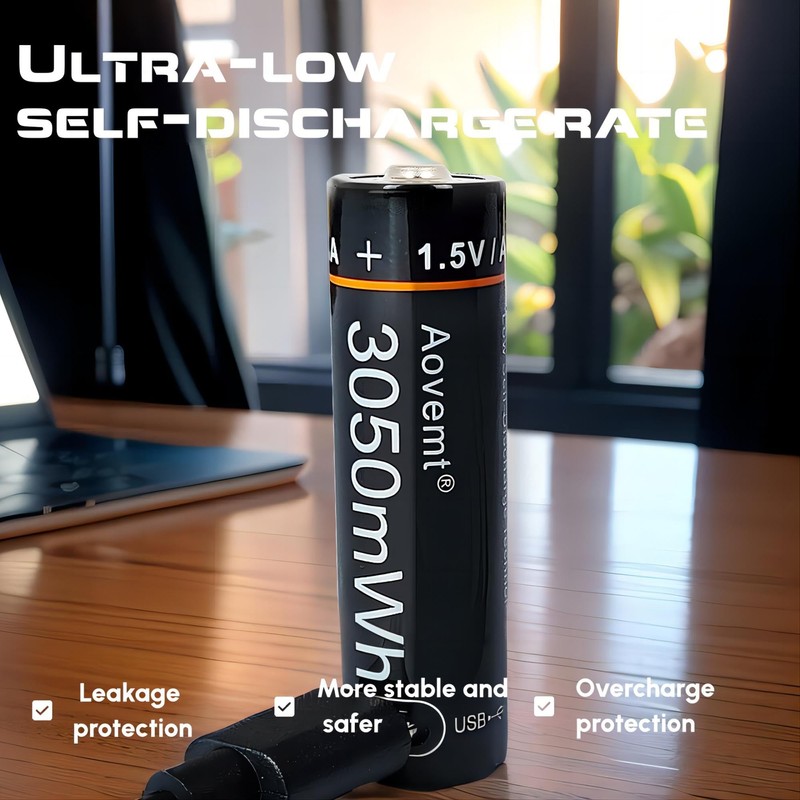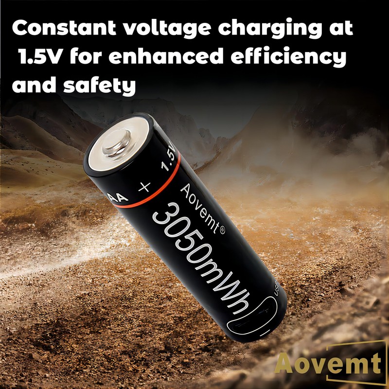 - High-Performance 1.5V/3050mWh Rechargeable Li-Ion Batteries: Aovemt's high-energy-density lithium-ion batteries feature low self-discharge and no memory effect. They provide stable voltage until fully depleted and can replace traditional alkaline, NiMH, and NiZn batteries for long-term use in various devices.