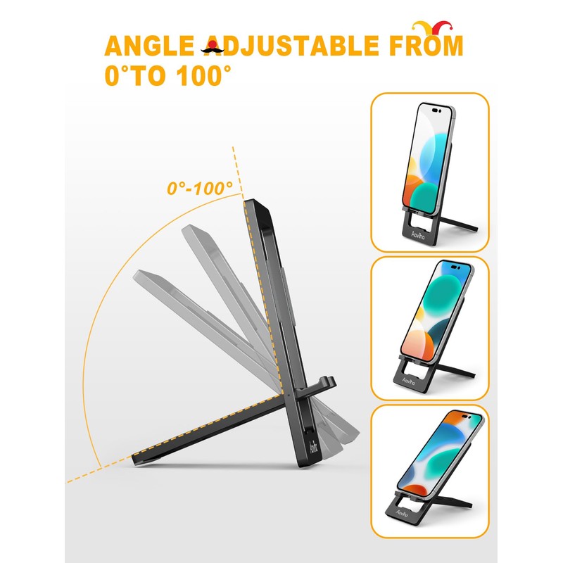 - ULTRA-PORTABLE: Our Cell Phone Stand can be adjustable and foldable, with an ultra-thin and lightweight phone holder is only 4 mm thick and 68g in weight, providing excellent portability for user