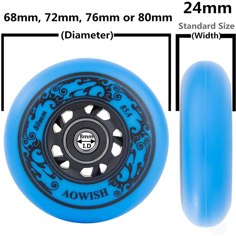 AOWISH 4-Pack Inline Skate Wheels Outdoor Asphalt Formula 85A Hockey Roller Blades Replacement Wheel with Bearings ABEC-9 and Floating Spacers (Blue, 72mm)