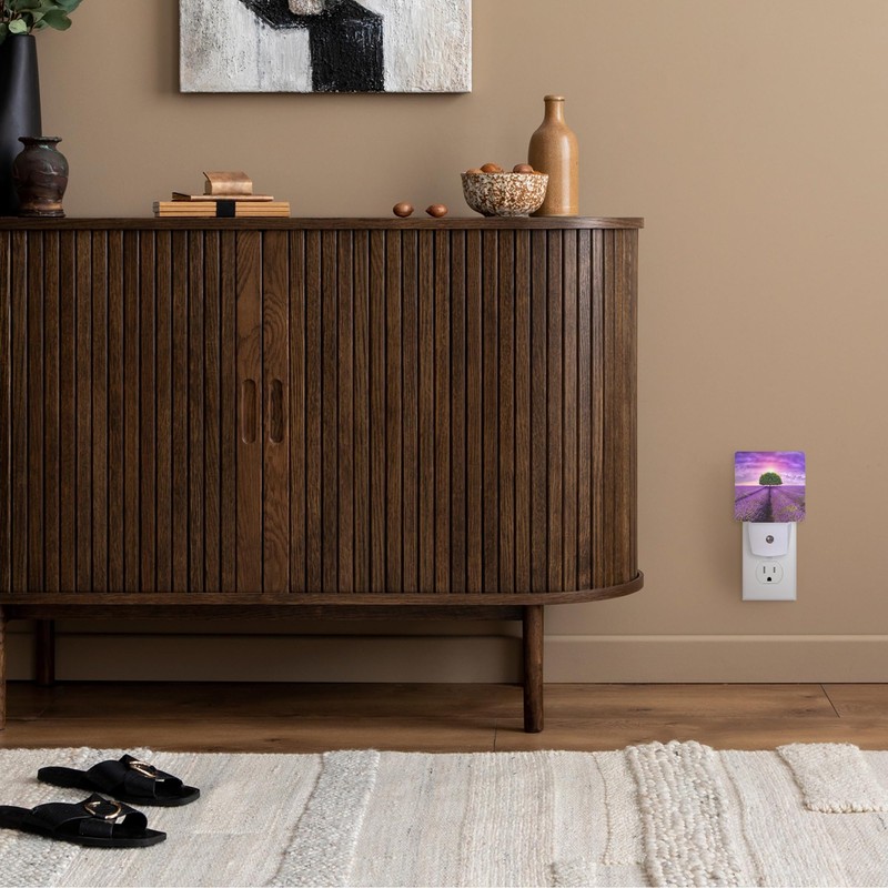 AOWULA Night Light,Beautiful Lavender Tree Plug-in Wall Led Night Lights Decor for Boys Girls Room,Dusk to Dawn Sensor Wall Lamp for Stairway/Hallway/Kitchen,0.5W