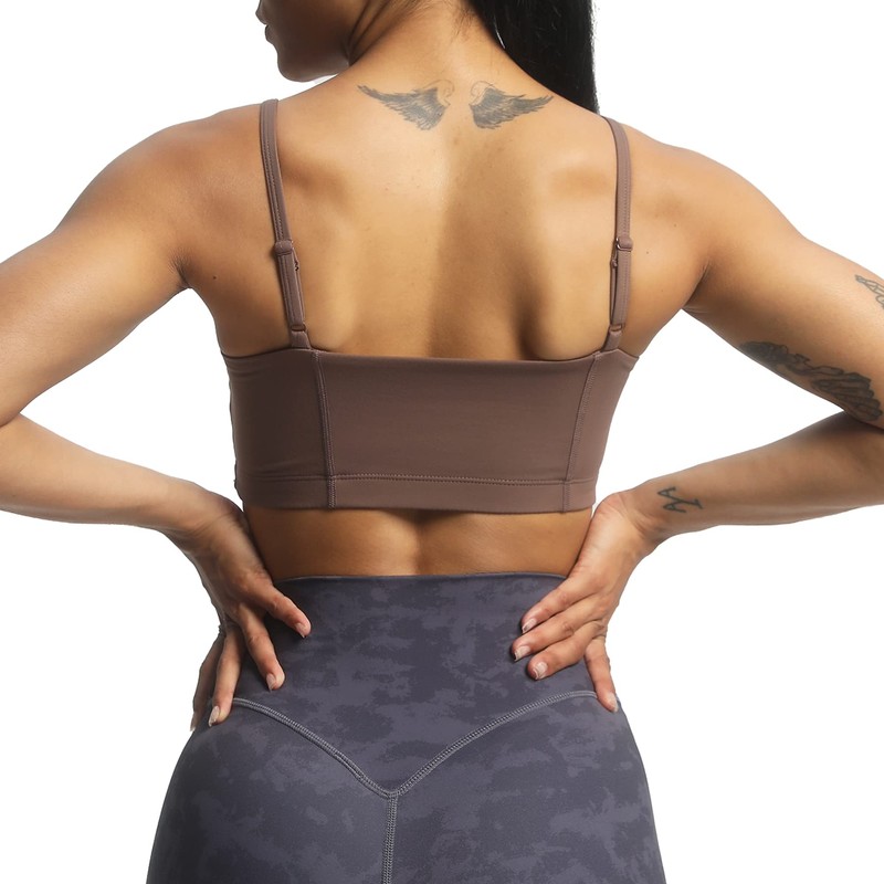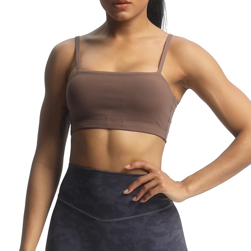 Aoxjox Women's Workout Bandeau Sports Bras Training Fitness Running Yoga Crop Tank Top (Fudge Coffee, Medium)