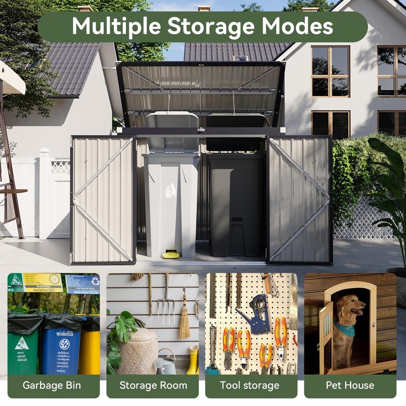Aoxun 3.3' x 5.6' Metal Storage Shed - Waterproof Outdoor Garbage Can Organizer with Chain Lid, Ideal for Trash Bins, Toys, Garden Tools - Perfect for Garden, Backyard, & Patio Use