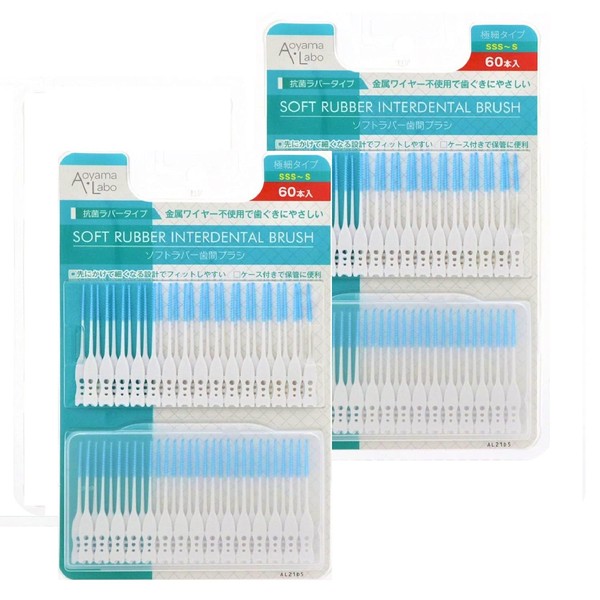 Aoyama Labo Soft Rubber Interdental Brush (Extra Fine Type, SSS-S), 120 Pieces (60 Pieces x 2 Pieces)