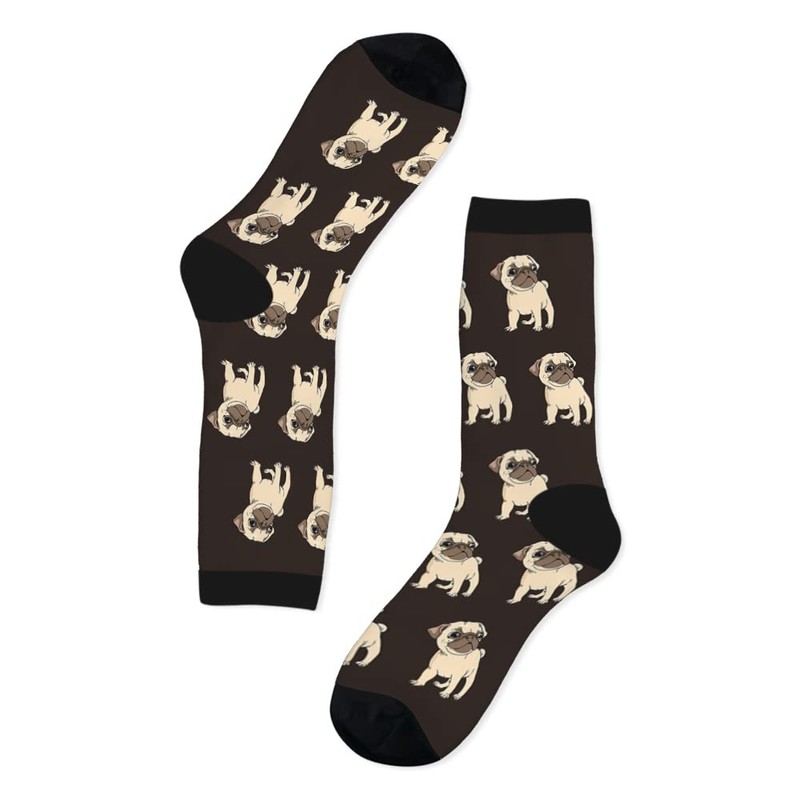- 【One Size Fits Most】These Beige Pug funny socks for women and men measure 16" X 3.2" , stretchy, durable and flexible. Fit Mens Shoes 6-10 Approx, Womens 8-12