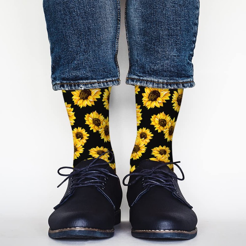 - 【One Size Fits Most】These Sunflower funny socks for women and men measure 16" X 3.2" , stretchy, durable and flexible. Fit Mens Shoes 6-10 Approx, Womens 8-12