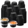 AOZITA 200-2 oz Black Jello Shot Cups, Portion Cups, Small Plastic Containers with Lids, Airtight Souffle Cups, Salad Dressing Container, Sauce Cups, Condiment Cups for Lunch, Party to Go, Trips