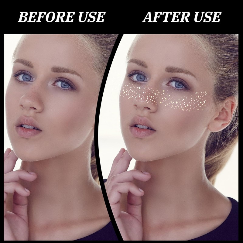 - 【Water-proof and Sweat-proof】Our glitter freckles face tattoos are waterproof and sweatproof, for long-lasting shine. Keep your makeup looking perfect whether you're hitting the gym, pool party, or inclement weather for a sparkling look all day long, saving you the hassle of touch-ups. Depending on the skin type and daily activities, they can last for 24 hours to 3 days.