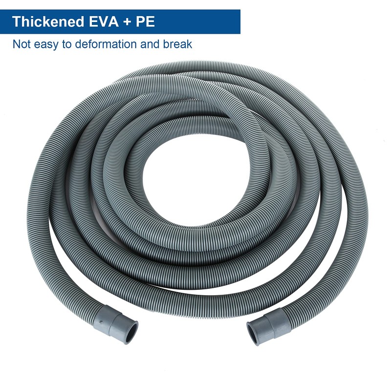 • Size: 16.4 feet washer drain hose for automatic front-loading washers with outlet diameters from 0.75" -0.86 "(19-22 mm). The adapter has a diameter of 0.82 "(21mm) and is suitable for all water pipes that are directly about 20 mm inside. Fitted with 0.7 "-1.25" (18-32mm) clamps for a stronger connection.