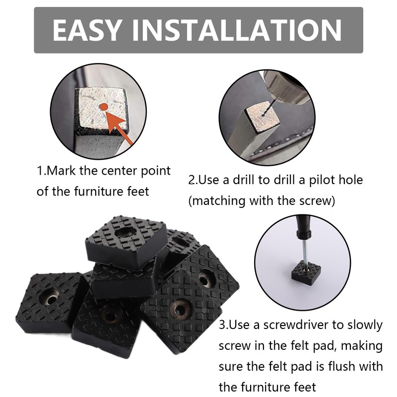 - Practical design: the furniture rubber feet black have built-in metal washers that can make the screws safer. The particles on the bottom of the black rubber feet increase friction between the furniture feet and the floor and prevent the furniture from slipping and scratching on the floor.