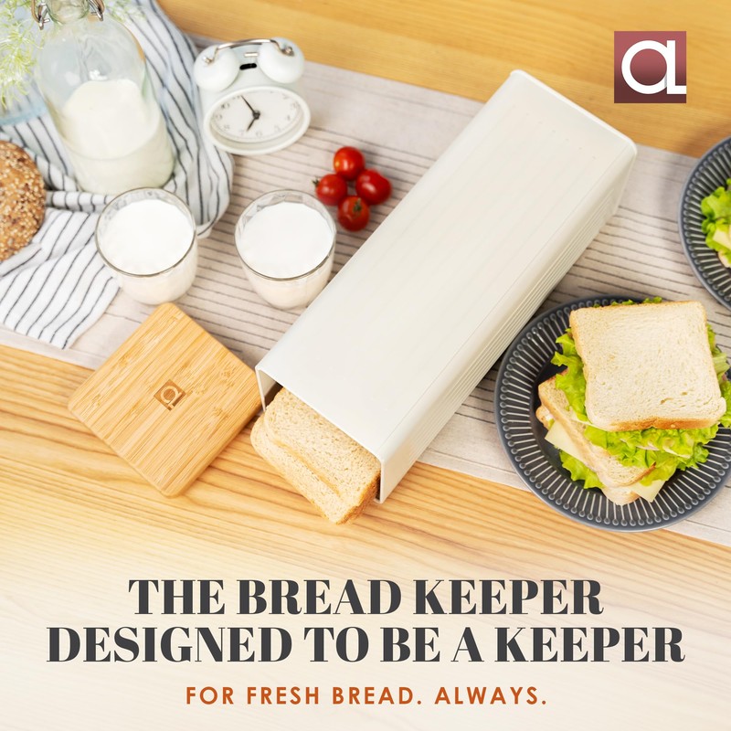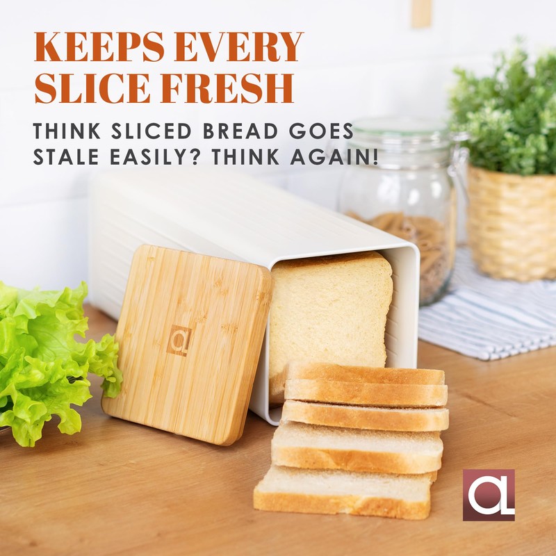 - SO EASY TO USE! PREPARE TASTY SNACKS WHENEVER YOU LIKE: Now you can serve up tasty sandwiches with ease. Simply lift the bamboo lid and your bread is all here. Why freeze when you can enjoy fresh from your bread storage container?