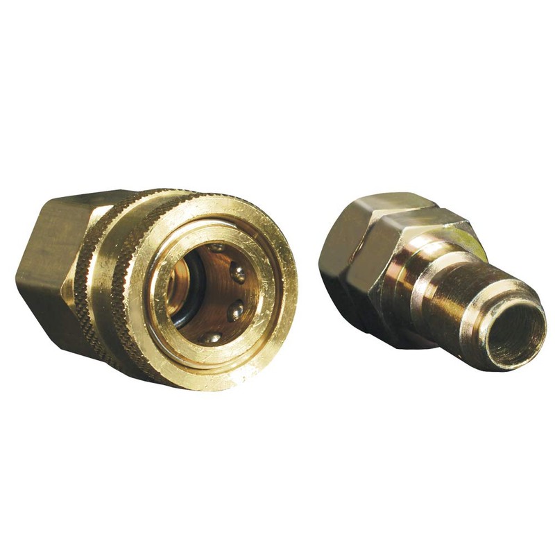 - Includes: 3/8" Quick Disconnect Plug x 3/8" Female Pipe Thread Adapter, 3/8" Quick Disconnect Socket x 3/8" Female Pipe Thread Adapter