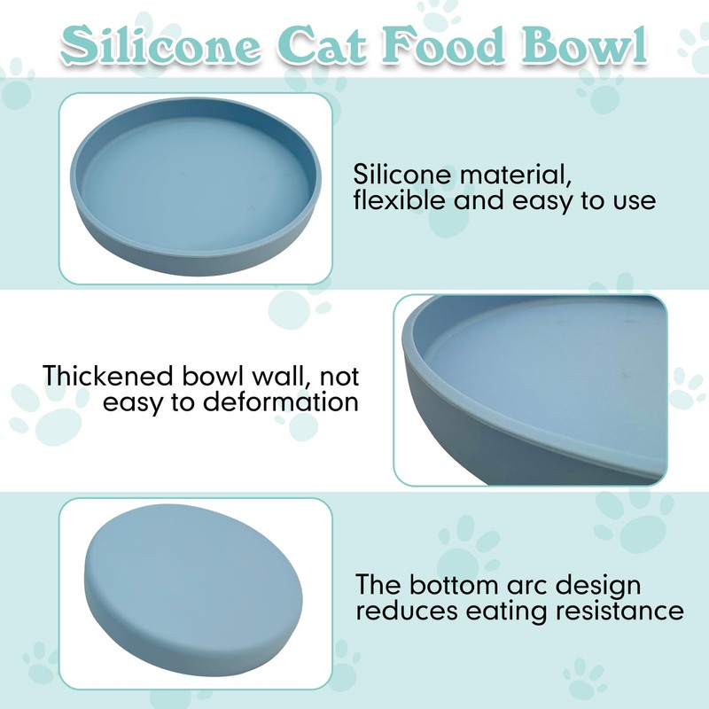 - Dishwasher Safe: Shallow silicone pet dish for cats are one-piece design, no seams and not easy to deform. Cleaning is very easy, just rinse with water. It can be washed in the dishwasher and supports microwave heating