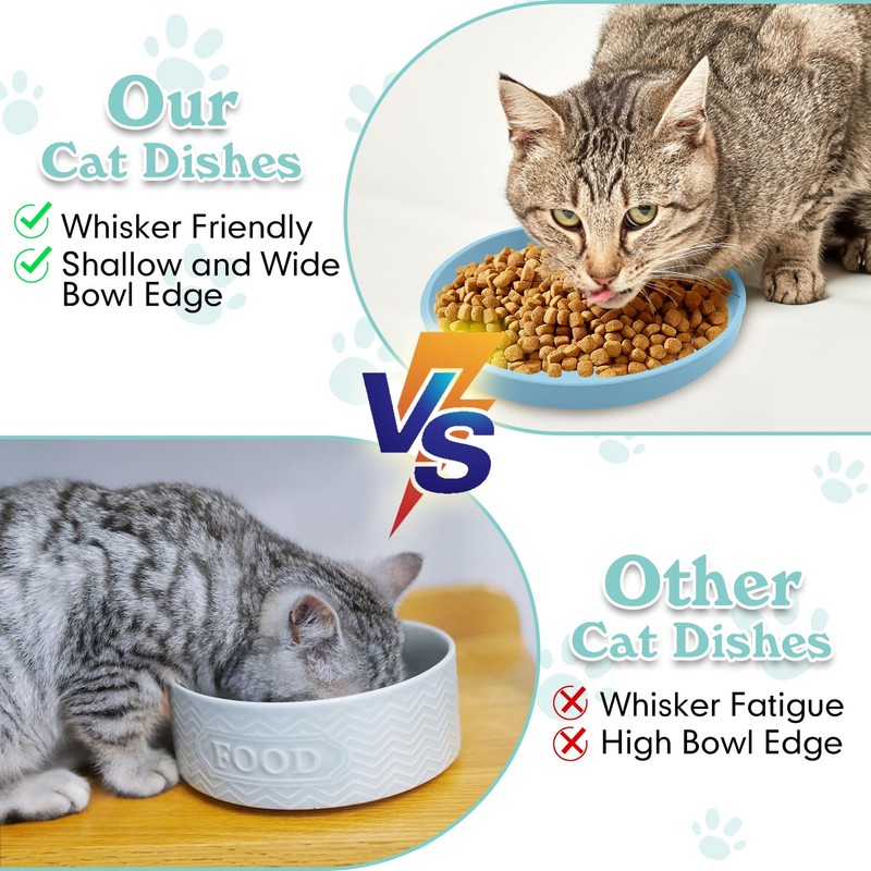 - Whisker Friendly: The shallow and wide design of the kitten feeding bowls allows your cat to easily access food without touching their whiskers, avoiding the discomfort of whisker fatigue