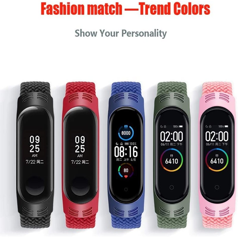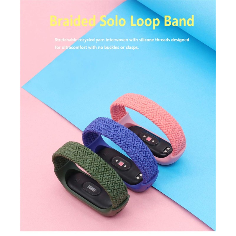 Apbands Watch Strap Compatible with Mi Band 5 4 3, Nylon Braided Solo Loop Bracelet