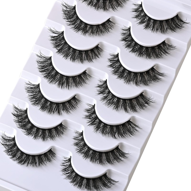APCYUST Lashes Wispy False Eyelashes Natural Cat Eye Strip Lash Fluffy Fake Lashes Strips Mink Eyelash Natural Looking Cateye Demi Wispies Eye Lashes Pack 7 Pairs Short Full Pestañas Postizas Set