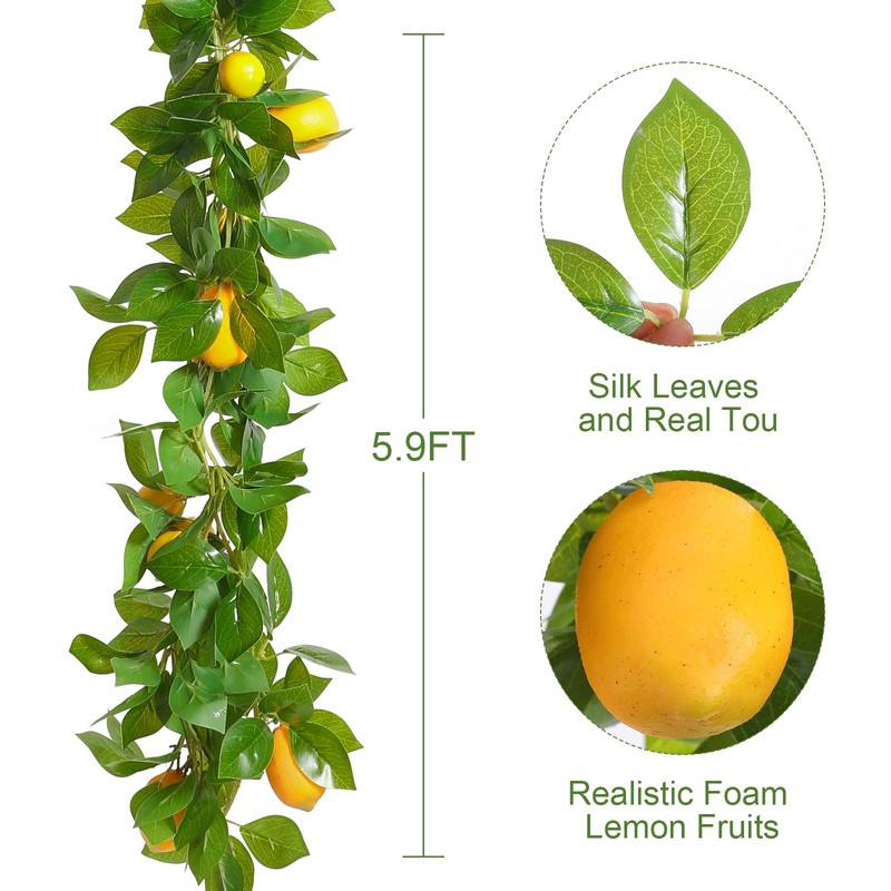 - ✨ Design Features-Botanical Accuracy: Realistic veining on PE leaves, matte-finish foam lemons with textured peel;Functional Flexibility: Internal wire-reinforced stems hold custom shapes;Lighting Option: Shinny LEDs (30 bulbs/vine)