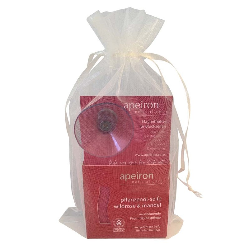 APEIRON Vegetable Oil Soaps, Wild Rose & Almond Gift Set with Soap Holder 100g
