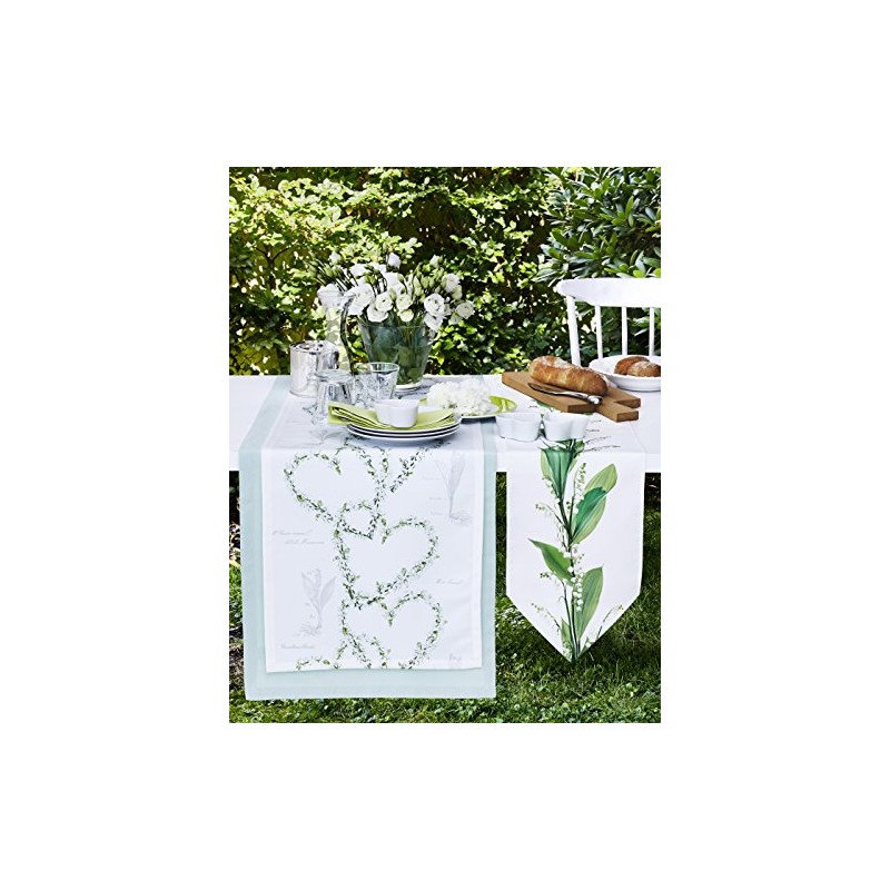 - A classic lily of the valley motif - realized from the delicate lily of the valley flowers, which fit over the elegant table runner with beautifully stitched lace and the cushion