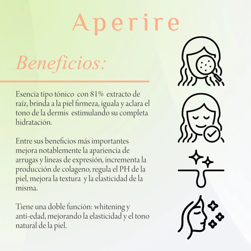 Descubre el poder rejuvenecedor del Tónico Facial Coreano Miracle Day Root Essence de Aperire, un tratamiento avanzado que hidrata, equilibra el pH y fortalece la piel para una apariencia firme y luminosa. Su fórmula ligera y de rápida absorción está diseñada para restaurar la vitalidad del rostro, proporcionando una hidratación profunda y duradera.