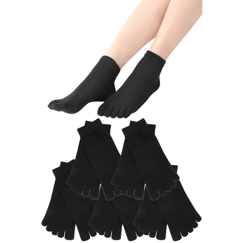 ApeStone Women's Five Toe Socks, 5 Pair Set, Casual, Stylish, Breathable, Durable, Odorless (Black), Black