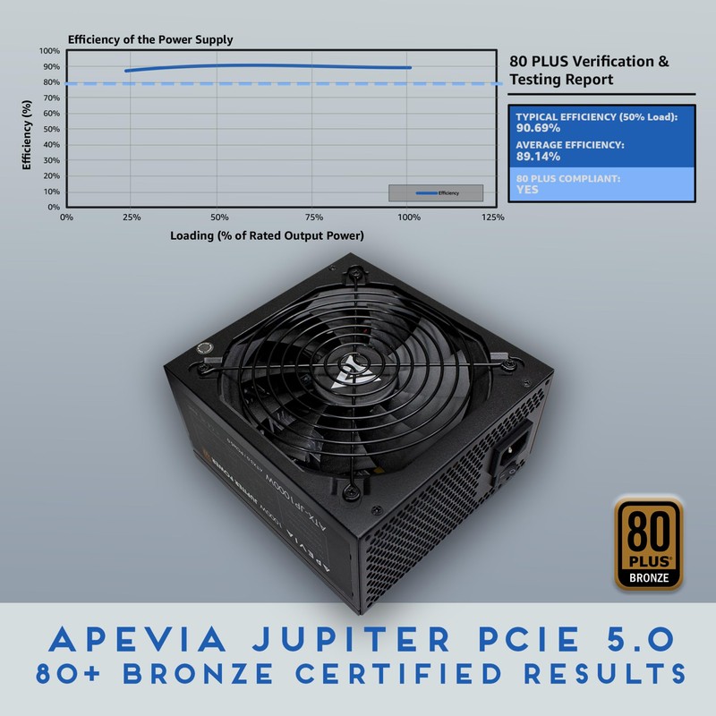 - Apevia ATX-JP1000W PCIe 5.0 Version Jupiter 1000W With PCle 5.0 / Gen 5 12VHPWR 12+4 (12pin/16pin) PSU Connector, 80 Plus Bronze Certified & RoHS Compliance, Active PFC ATX Gaming Power Supply. ATX 3.0 Ready.