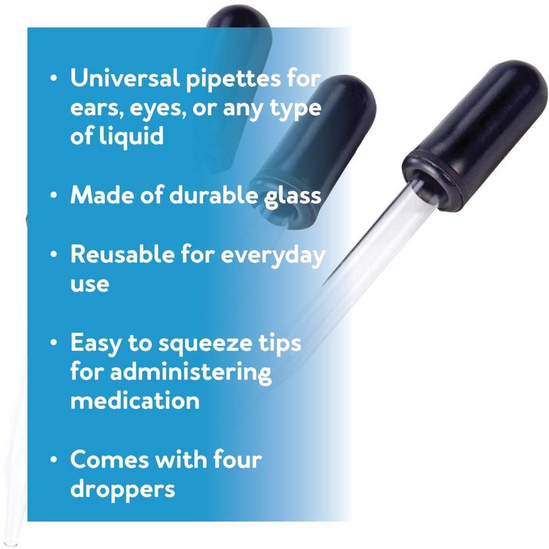 - UNIVERSAL GLASS DROPPERS. Use each pipette dropper as ear care products, a medication dropper, or for a variety of liquids.