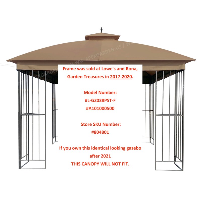 - REPLACEMENT CANOPY TOP ONLY FIT for Model #L-GZ038PST-F Garden Treasures 10 ft x 10 ft Brown Metal Square Semi- Gazebo, Item#804801, Model #L-GZ038PST-F