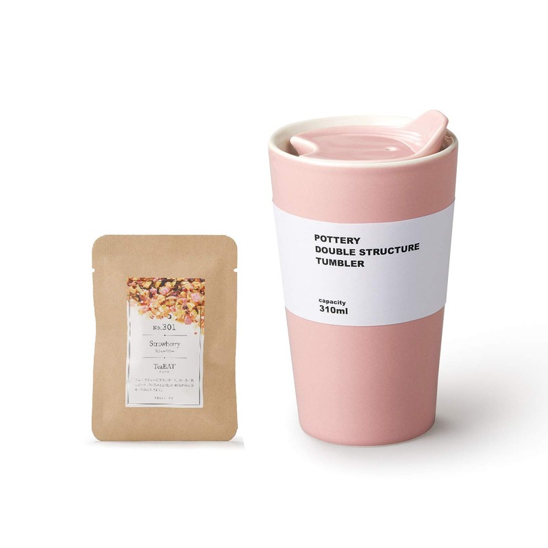- Ceramic Double Wall Tumbler (1) Approx. φ3.4 x H 5.4 inches (8.6 x 13.7 cm) (10 ml); Fruit Tea (Strawberry) (1) 0.4 oz (10 g); Shelf Life: 365 days