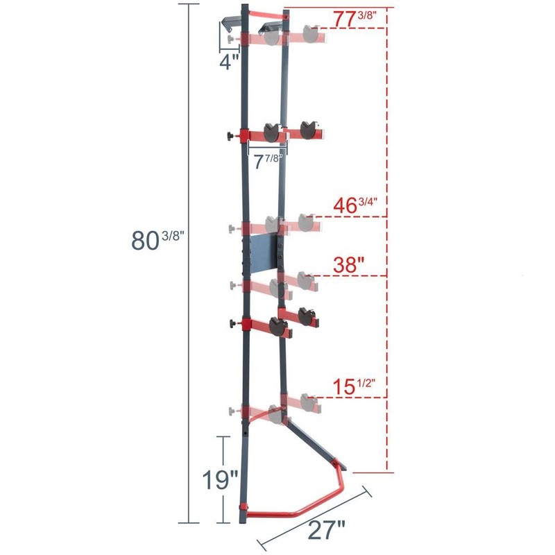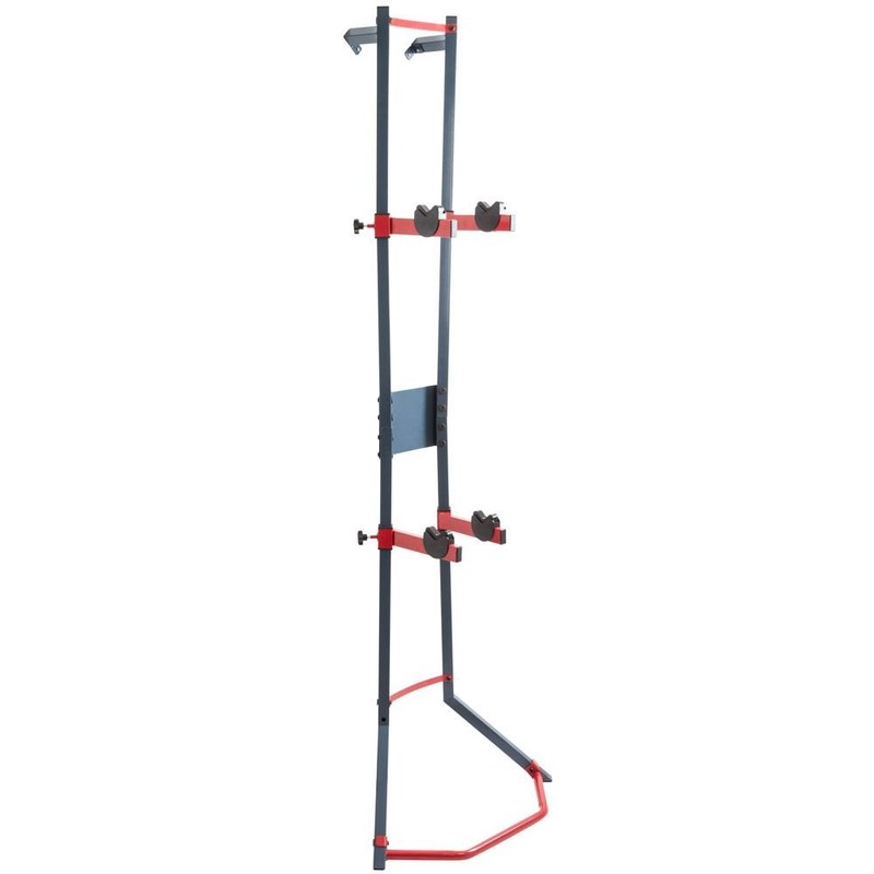 - Wall-leaning vertical rack for storing up to two bikes